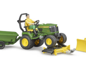 John Deere Aufsitzrasenmäher mit Anhänger und Gärtner