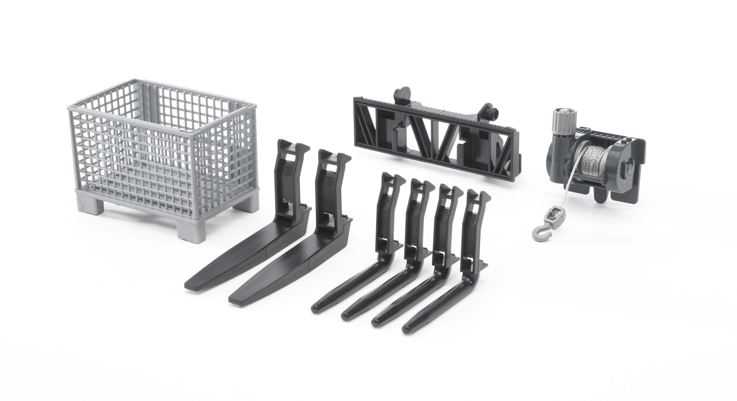 Zubehör: Gitterpalette- Seilwinde und Frontladergabeln